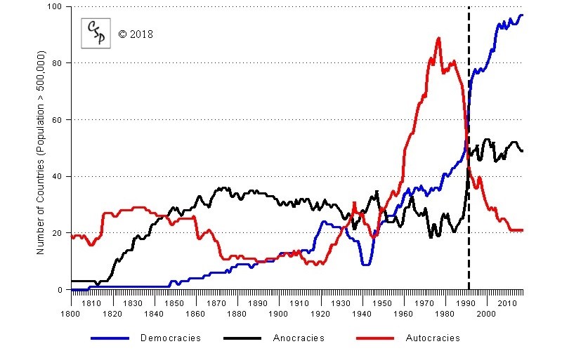 Figura 1. Tendencia histórica de los regímenes políticos en el mundo