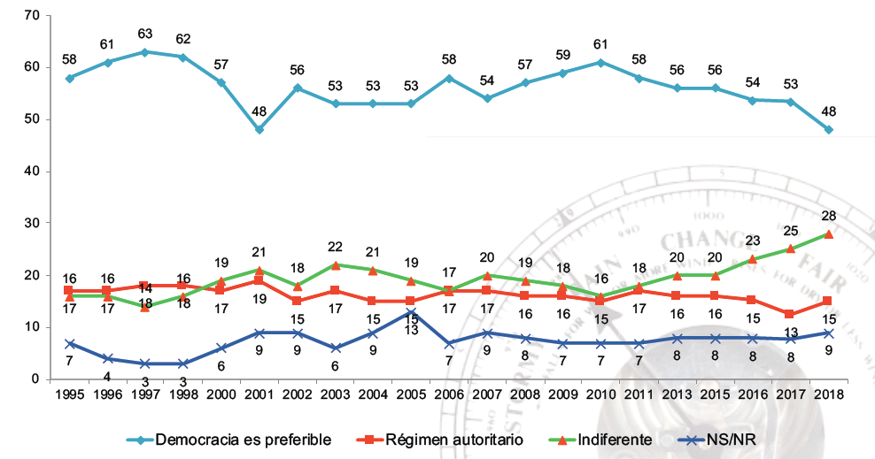 Figura 2. Apoyo a la democracia: total de América Latina (1995-2018)