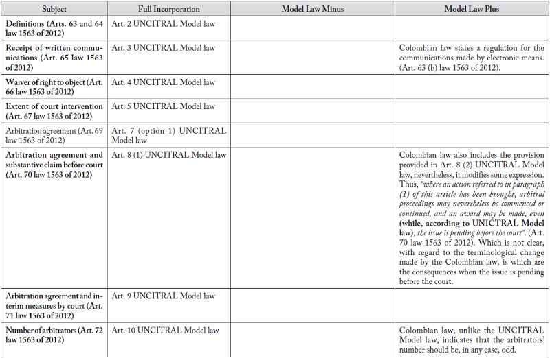But, what is the practical effect of this adoption? A quick comparison between the Arbitration Statute and the Model Law results in "full incorporation" with some significant variations: