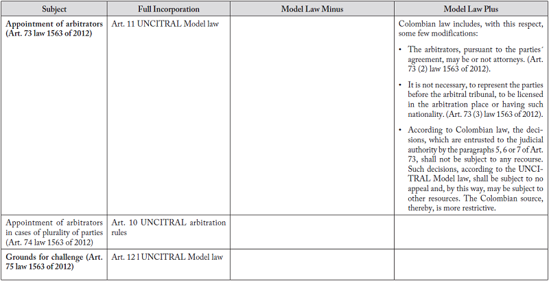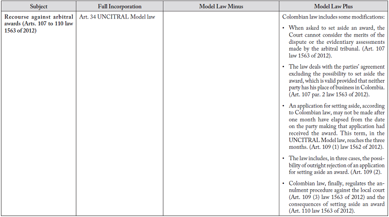 v) Finally, on the fifth criterion, "some countries should be avoided on the basis that their legislation applicable to international arbitration is simply outdated, unclear, conflicting and difficult to navigate. One shorthand way of ascertaining whether an unfamiliar country has a legislative framework suitable for international arbitration is to check whether that country has adopted the UNCITRAL Model Law on International Arbitration" (Reed, 2002, p. 571). This is perhaps Colombia's most important recent accomplishment. In fact, Colombia's inclusion in the list of Model Law countries will allegedly boost investor's confidence in the juridical security of the country and will attract the desired foreign arbitration proceedings.