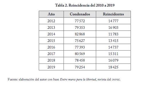 Instituto Nacional Penitenciario y Carcelario (inpec). (2018). Informe reincidencia del 2010 al 2017. [En línea] 15 de marzo 2019. Disponible en https://www.inpec.gov.co/estadisticas/informes-y-boletines/-/document_library/6SjHVBGriPOM/view_file/632488?_com_li-feray_document_library_web_portlet_DLPortlet_INSTANCE_6SjHVBGriPOM_ver-sion=1.0