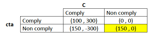 Finally, if both players choose to “breach,” neither will make a profit or loss and consequently, the CTR will receive 150 due to the third party’s payment to play this strategy. In contrast, the CP will receive 0.
