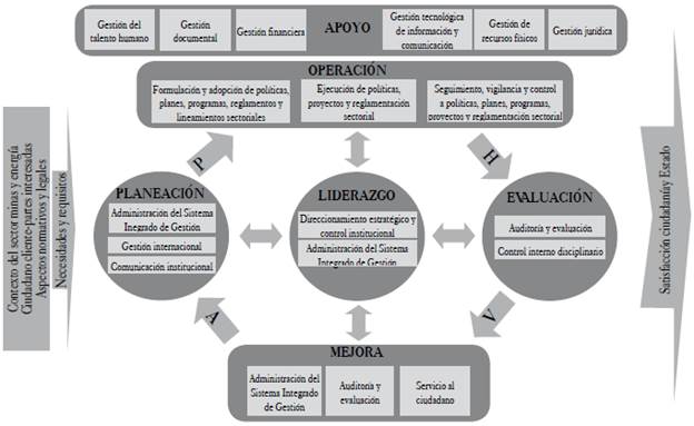 Por su parte, El Ministerio de Minas y Energía (Ministerio de Minas y Energía, 2015) cuenta con un Sistema Integrado de Gestión, que contiene los sistemas ISO 9001, GP 1000 y MECI, el cual en sus procesos adelanta actividades de orden administrativo, que generan impactos al medio ambiente y requieren ser gestionados de manera eficiente, a través de la implementación de un sistema de gestión ambiental en el marco de este Sistema Integrado de Gestión.