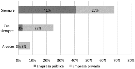 Un 50 % de las iniciativas desarrolladas por las empresas corresponden a actividades que nacen de la obligatoriedad normativa y el otro 50 % son de carácter voluntario, sin que se observe que estas últimas se traten de acciones que trasciendan las prácticas más sencillas y comúnmente usadas por las organizaciones en el ámbito de sus operaciones.