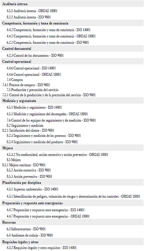 Con base en el análisis por cada norma se consolidaron, con un enfoque integrado, los aspectos de gestión relacionados con los hallazgos más frecuentes.