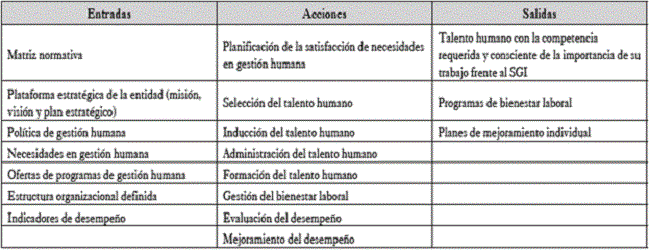 En dichos procesos se contempla la gestión del talento humano, los cuales pueden garantizar las personas necesarias y competentes para implementar de manera eficaz el SGI. Se debería considerar y gestionar las competencias de las personas.