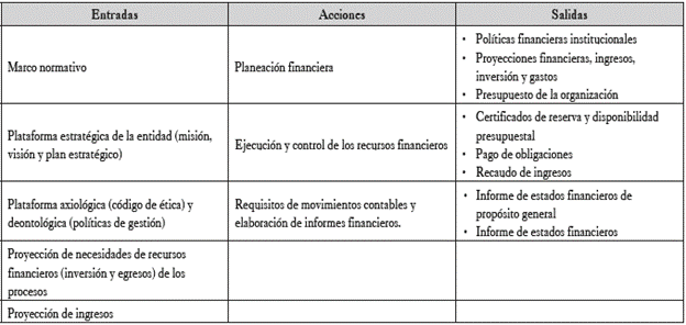 Objetivo: dirigir e integrar las actividades de planeación financiera, la ejecución presupuestal, el control de recursos financieros, registro de los movimientos financieros y presentación de informes.