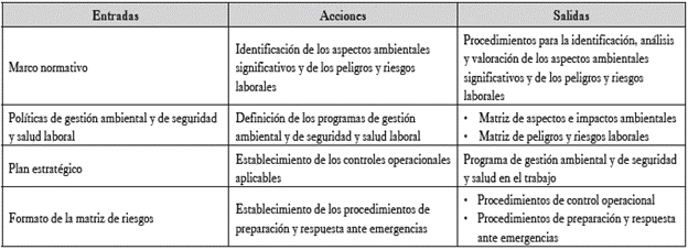 Para la planificación de las acciones se tienen en cuenta algunos criterios expuestos en el libro SGI. Una sola gestión, un solo equipo (Atehortúa, Bustamante y Valencia, 2008, p. 77). Dentro de la guía de gestión integral, se propone implementar los procesos, teniendo en cuenta las entradas, acciones y salidas propuestas. A continuación, se detallan los objetivos de cada uno de ellos:
