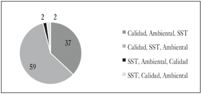 En cuanto a la apreciación de los actores que participaron, se puede ver que la mayor representación está en la opción de integrar progresivamente, estando de acuerdo con la referencia teórica de la integración, que indica que esta es la más usada. También se observa en la figura 5, que el orden de la incorporación de los sistemas de gestión tiene una base que es el sistema de gestión de calidad.