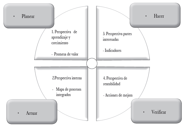 La metodología de integración construida a través de los indicadores mencionados permitió obtener elementos comunes de cada una de las normas técnicas y modelos normativos, además de relacionar el mapa estratégico con el ciclo PHVA (figura 1).