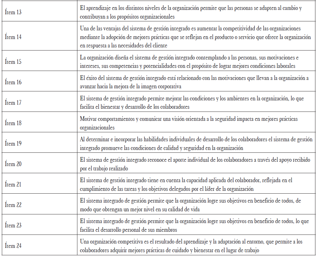En segundo lugar, se llevó a cabo la construcción del mapa de operacionalización de variables. Teniendo como base los elementos proporcionados por los autores citados en el marco teórico se establecieron veinticuatro ítems (afirmaciones), los cuales permitieron definir los lineamientos del diseño de la metodología para la integración de la gestión.