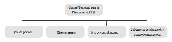 Para implementar las estrategias del área de TH y ejecutar los planes de acción se propone la creación de un Comité Temporal para la Planeación del TH (figura 4) cuya duración dependerá del plazo que se tome la entidad para ejecutar el Plan de Acción, tras lo cual aquel se disolverá y dejará sus labores de control a cargo del área de TH.