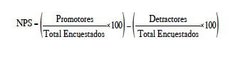 Posteriormente el indicador se obtiene como resultado de restar el porcentaje de detractores al porcentaje de promotores, así:
