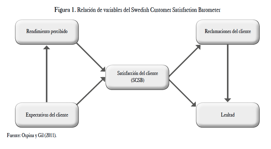 La primera propuesta de modelo de índice nacional de satisfacción fue conocida como Swedish Customer Satisfaction Barometer (Fornell, 1992) y delimitaba un modelo de ecuaciones estructurales en donde la satisfacción definida como variable central se relaciona con un conjunto de variables tanto de antecedentes (expectativas del cliente y rendimiento percibido) como de consecuencias (reclamaciones del cliente y lealtad).