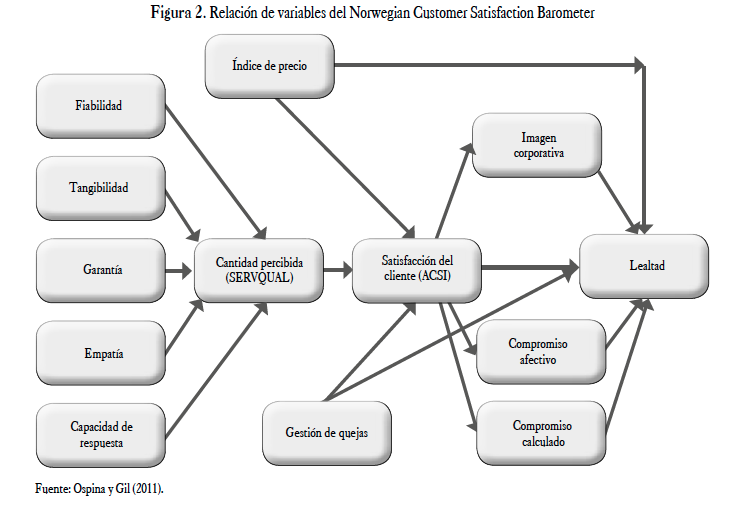 Posteriormente se conocieron otras propuestas como American Customer Satisfaction Index (Fornell, Johnson, Anderson & Bryant, 1996), European Customer Satisfaction Index (Eklöf, 2000), Norwegian Customer Satisfaction Barometer (Johnson, Gustafsson, Andreassen, Lervik & Cha, 2001) y Hong Kong Customer Satisfaction Index (Chan et al., 2003), las cuales consistían en modelos más complejos que involucraban más variables como el precio y la imagen corporativa, entre otras. Lo anterior demuestra que para la medición de la satisfacción cada vez es más necesario ahondar en la experiencia del usuario en los diferentes momentos del ciclo de prestación del servicio y considerar más variables que parecen ser relevantes para tal fin.