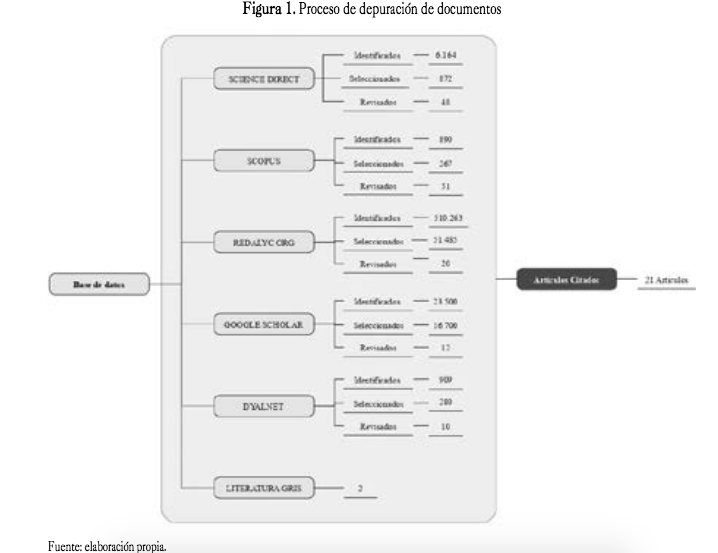 Una vez obtenidos los resultados de estas búsquedas se selecciona la literatura que presenta más afinidad al objeto de revisión del presente artículo refinando únicamente artículos académicos de investigación y revisión, así como las publicaciones en revistas especializadas de índole gerencial, afines a las ciencias económicas, administrativas, sociales o similares, con el fin de descartar análisis que integren en las dinámicas del conocimiento y orientación al servicio comunes a disciplinas específi- cas como la medicina, enfermería y ciencias de la salud, cuya gestión del conocimiento se integra más a la misio- nalidad profesional que a las dinámicas institucionales generales aplicables al sector público en general.