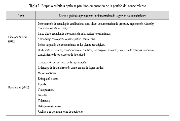 Aproximação às diretrizes para a implementação da gestão do conhecimento nas entidades do setor público na Colômbia