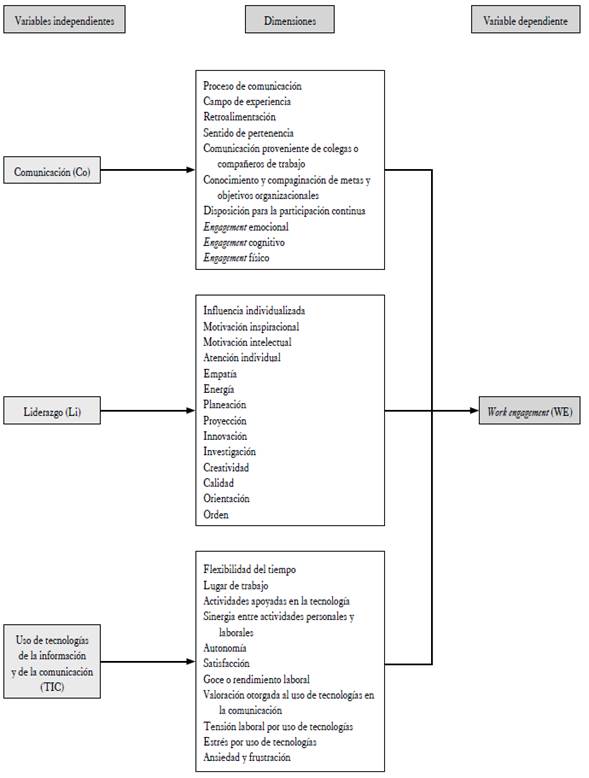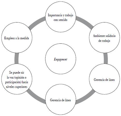 Con la información que se ha presentado, se diseñó un instrumento que permite medir el nivel de compromiso en el trabajo en una organización, dando como resultado el diagrama específico de variables presentado en la Figura 5.