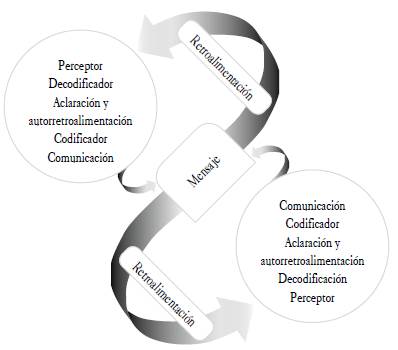 La percepción que tiene el individuo cada vez que nota un mensaje o información es que esta es susceptible de decodificarse o entenderse, y posteriormente genera sus propias aclaraciones; con esto adquiere una necesaria autorretroalimentación, consecutivamente codifica nueva información y finalmente se comunica. Se debe tomar en cuenta que cada vez que se transmite o retroalimenta algo, implica en esencia un salto de autorretroalimentación. La información puede pasar por diferentes medios, tanto tecnológicos como personales, así como directos o indirectos en tiempo o lugar, pero a la vez autorretroalimenta nuestra propia información y percepción de qué se comunica, se piensa, se dice o se hace.