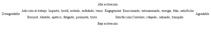 Bakker y Oerlemans (2011) desarrollaron un sistema circunflejo de emociones. El modelo bidimensional del bienestar subjetivo en el trabajo nos ayuda a entender que existen elementos que van relacionados con el compromiso y el síndrome de desgaste profesional, los cuales se muestran en la Tabla 1.