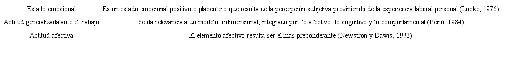 Para tener presente la perspectiva de la satisfacción laboral y entenderse, va a depender de la perspectiva del concepto, por lo que cada autor desarrolla una nueva definición, que de acuerdo con la investigación llevada a cabo por Harpaz (1983), esta variable se puede estructurar o asociar conceptualmente como se muestra en la Tabla 2, de acuerdo con diferentes autores.
