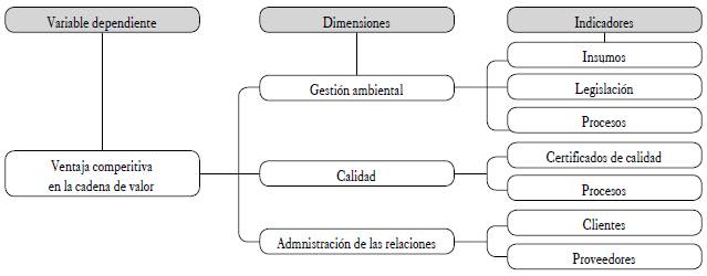 La competitividad surge como uno de los principales conceptos debido a la globalización, pone a todos países en un enlace, con una relación continua. Se desarrollan estrategias nacionales para permitir que los países productores tengan una posición preferencial en el mercado global y manteniendo una continuidad en caso de su efectividad (Bilgen y Varoglu, 2016). Desarrollar estrategias sostenidas para incrementar su prosperidad es la presión de la competitividad global, por lo tanto, las estrategias necesitan los resultados de la investigación científica para determinar con claridad los temas significativos para el análisis de la competitividad. En esta investigación y a pesar de la literatura existente sobre el tema, se propuso un método de medición con el fin de contribuir cualitativamente en el análisis de las fuentes de la competitividad y ventajas competitivas. Esta metodología mide indicadores, dimensiones y variables; la determinación del modelo fue con base en la revisión de la literatura y se utilizó el análisis de la cadena de valor de Porter.