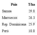En el plano internacional, otro aspecto que se evalúa es el número de toneladas por hectárea. La producción de México, y en especial de los aguacateros michoacanos, está entre regular y baja, pero si se compara con el mejor país productor la diferencia en muy amplia; esto se observa en la Tabla 2. en Latinoamérica varios países han incrementado sus exportaciones al mercado norteamericano, como son Colombia, República Dominicana y Perú, los cuales se unen a competidores ya establecidos como California y Chile (Info-Hass, 2015). Ver Tabla 2.