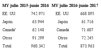 Lo mencionado anteriormente se refleja en las exportaciones mexicanas de aguacate a diversos países del mundo, que se han visto disminuidas en el último ciclo como se muestra en la Tabla 3.