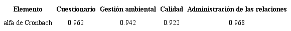 Aspectos vitales posteriores a la elaboración del cuestionario son la medición de la validez y la confiabilidad. La validez de un cuestionario es un aspecto de la misma importancia que la confiabilidad, la validez está relacionada con la revisión del marco teórico. Una buena revisión contribuye a que el diseño del cuestionario sea válido (Rivas, 2004) y la confiabilidad con la consistencia interna del cuestionario, es decir, que produce resultados similares en diversas ocasiones, la Tabla 4 muestra los resultados de confiabilidad.
