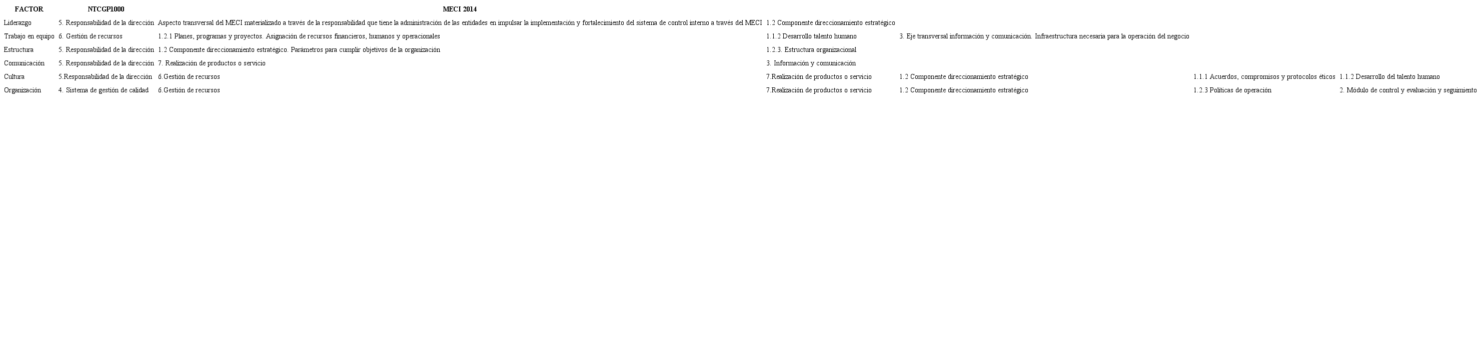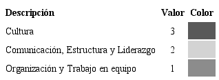 Los factores establecidos a partir de las normas y principios de calidad, (cultura, comunicación, estructura, liderazgo, organización, trabajo en equipo, cliente, procesos, gestión) son los mas adecuados para valorar el sistema de gestión de calidad y sirven para establecer su grado de madurez y orientar las acciones a desarrollar.