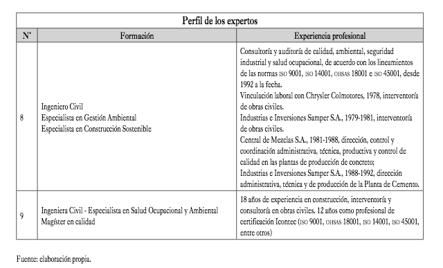Para la validación de contenido, se efectuó invitación directa a nueve expertos que se relacionan en la tabla 1. Estos fueron seleccionados de acuerdo con los siguientes criterios de inclusión: 1) que contaran con experiencia en procesos de auditoría usando el referente iso 19011 y 2) que contaran con formación de pregrado o posgrado relacionado con sistemas de gestión. Se utilizó un cuestionario tipo Likert para el proceso de evaluación.