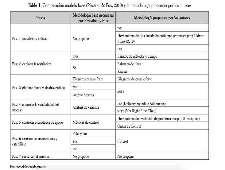 Lo anterior no pretende desmentir que existan casos de éxito en algunas implementaciones que ofrecen una ven- taja competitiva a quienes lo consiguen; normalmente, estos sistemas se utilizan por separado, generando la in- certidumbre sobre cuál de los enfoques es mejor utilizar. Esto ha provocado que se presenten diferentes propuestas que buscan la sinergia entre las metodologías, dando como resultado otros enfoques tales como toc-Six Sigma, Lean-toc o Lean-Six Sigma, siendo este último uno de los más exitosos e implementados en las empresas de acuerdo con Ramirez y Tesen (2015).