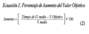 - Porcentaje de aumento. Se calcula haciendo uso del valor promedio y el valor objetivo determinados con anterioridad.