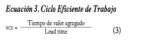 a. Determinación del ciclo eficiente de trabajo (o wce, por sus siglas en inglés) de la restricción. Está representado por la relación de las actividades que agregan valor al cliente y lead total de la cadena.