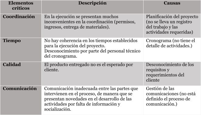 Después de analizar los resultados de la aplicación de las encuestas, se concluye que es necesario implementar sistemas distribuidos de antenas. Sin embargo, existen dificultades en el proceso de ejecución en lo que respecta a los tiempos, donde los encuestados manifiestan alternativas para tratar las áreas que presentan mayores dificultades, las cuales no han sido solucionadas con las acciones correctivas desarrolladas. Se detallan aspectos en los que se presentan mayores incidencias, es decir, los elementos o factores críticos que deben considerarse en el diseño de la metodología. En la tabla 1 se relacionan los puntos a intervenir.