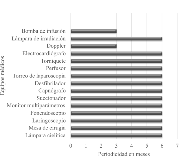 La periodicidad del mantenimiento preventivo para los equipos con los puntajes más altos de repetitividad en las entrevistas se muestra en la figura 5.
