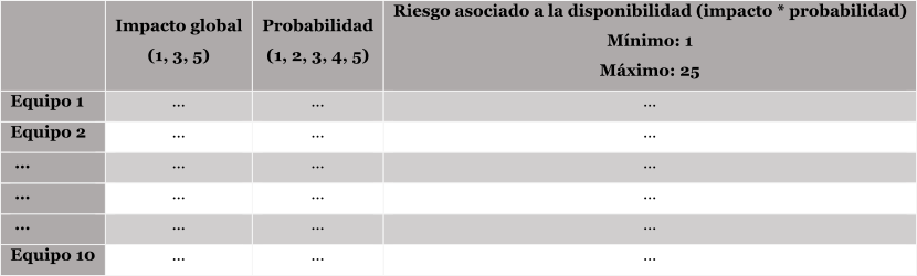 Evaluación del nivel de riesgo asociado a la disponibilidad de equipos
