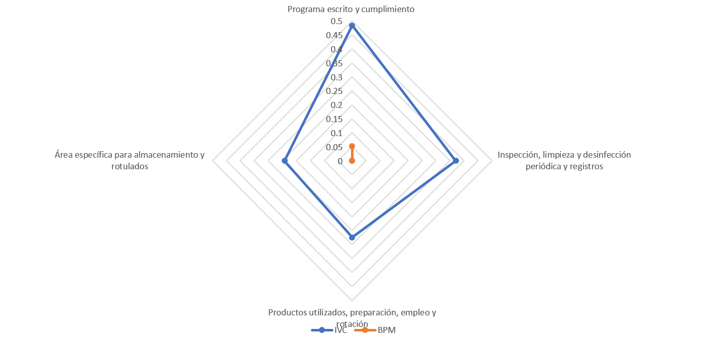 En el desarrollo del diagnóstico se verificaron 18 variables relacionadas con la edificación e instalaciones, personal manipulador, educación y capacitación, abastecimiento de agua, disposición de residuos líquidos y sólidos, limpieza y desinfección, control de plagas, equipos y utensilios, higiene locativa, materias primas e insumos, envases, condiciones de fabricación, envasado y rotulado, condiciones de almacenamiento, transporte, verificación documental, proveedores, servicios de laboratorios.