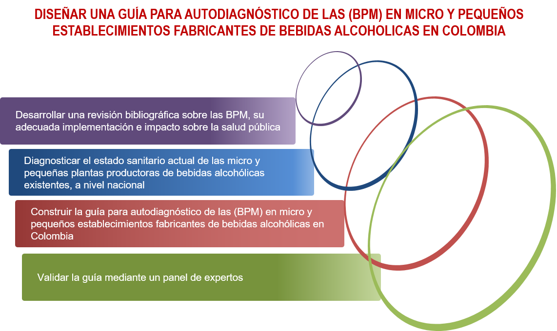 Para el desarrollo y diseño de la guía de autodiagnóstico de las buenas prácticas de manufactura (BPM) en micro y pequeños establecimientos fabricantes de bebidas alcohólicas en Colombia, se desarrolla inicialmente una verificación general de la situación sanitaria, un diagnóstico de la muestra de plantas observadas, un diseño de la guía estructurada en una plantilla por capítulos, la cual recorre los diferentes temas y barre las diferentes variables sanitarias de las plantas muestreadas.