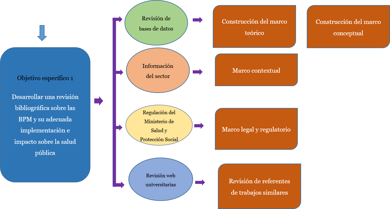 La primera fase de la investigación se basó en una revisión bibliográfica (ver figura 2), la cual permitió analizar la importancia de las BPM, conocer el estado general del sector manufacturero, mostrar el marco regulatorio y mencionar algunos estudios asociados al objeto de interés de la investigación.