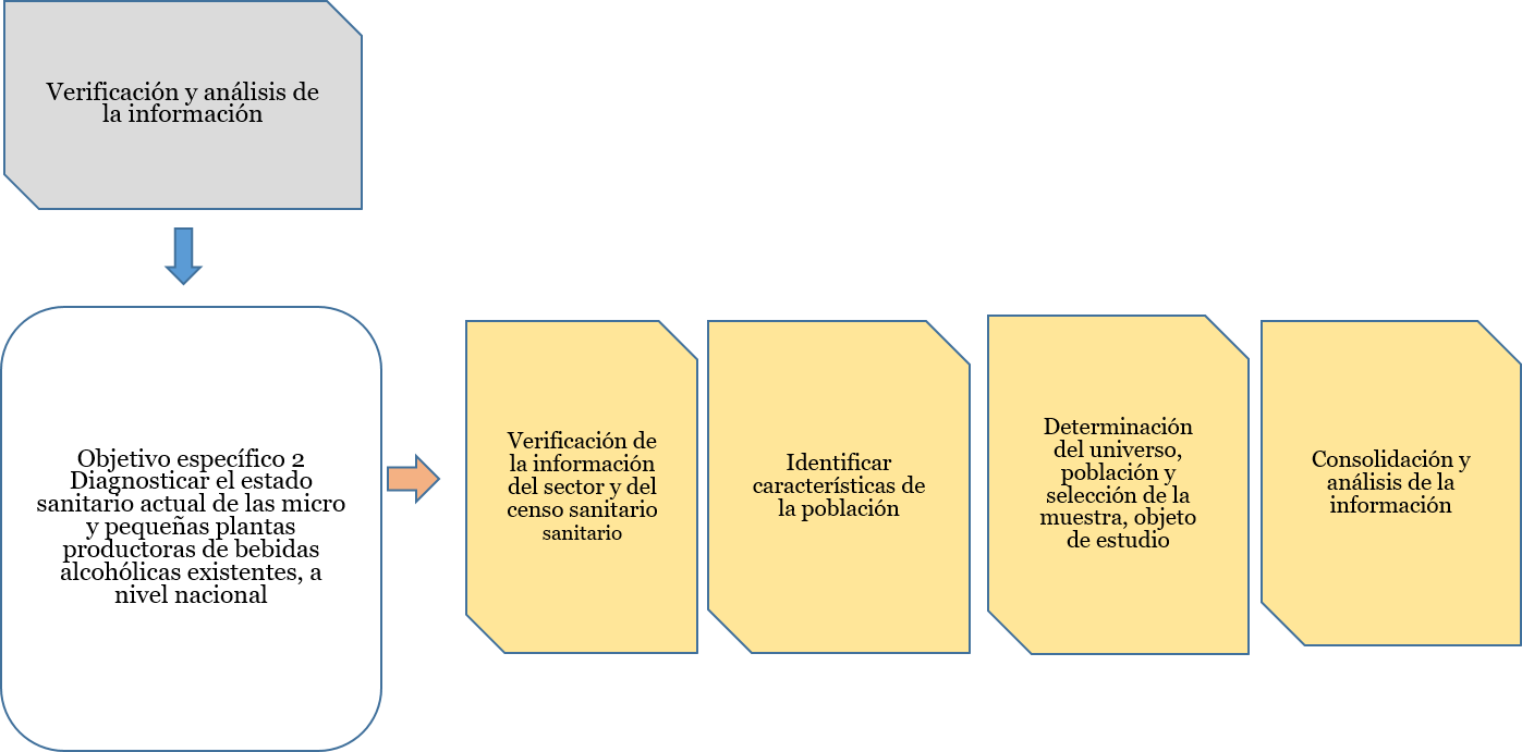 La información relacionada con el panorama del sector manufacturero fue recabada a partir de una revisión bibliográfica de bases de datos, fuentes académicas y verificación de cifras y estadísticas nacionales emitidas por los gremios y revistas del sector, información del Ministerio de Salud y Protección Social y, en la segunda fase a partir de información emitida por el Invima. Fue así como, para el diagnóstico, se analizó el censo sanitario y luego se verificó un comportamiento de variables sanitarias obtenidas a partir del análisis de actas sanitarias de plantas vigiladas o certificadas en BPM, en un periodo dado.