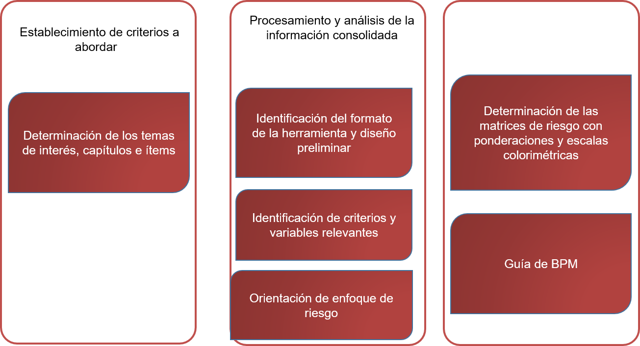 En concordancia con lo antes expuesto, la herramienta técnica propuesta busca facilitar a las manufactureras una autoevaluación eficiente con una firme base técnica y reglamentaria, a fin de ejecutarse de manera sencilla y ágil, con un enfoque de riesgo, lo cual permita identificar eficientemente falencias y fortalezas, implementar acciones correctivas oportunas y promover la mejora continua de las organizaciones a la luz de las disposiciones regulatorias vigentes.