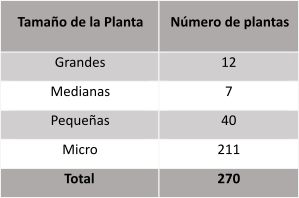También se observó el universo de plantas al momento del estudio, año 2019, y su categorización según el tamaño, de la siguiente manera (ver tabla 2):