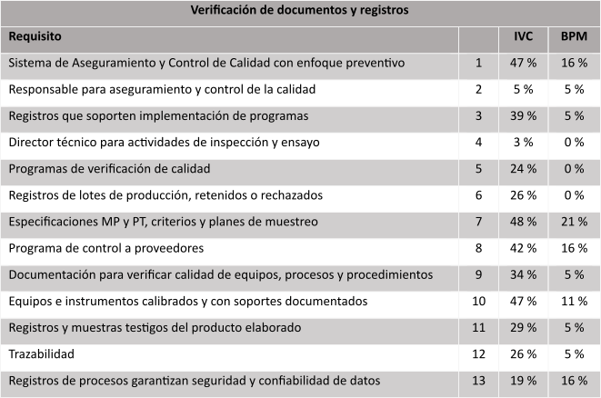 Una vez realizada la verificación del tema específico se observan los puntos más altos de las plantas vigiladas, asociados al manejo documental y de registros, que den cuenta del desarrollo de actividades y controles a proveedores, equipos, materias primas e insumos, que conlleven al otro requerimiento evidenciado de un enfoque preventivo del sistema de aseguramiento y de calidad.