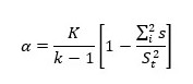 Una vez medidos los resultados de forma general, se decidió aplicar el cálculo del coeficiente alfa de Cronbach para reducir sustancialmente la incertidumbre en el análisis de la encuesta. Esto estima la fiabilidad de la herramienta de medición con unos ítems mediante la siguiente ecuación.
