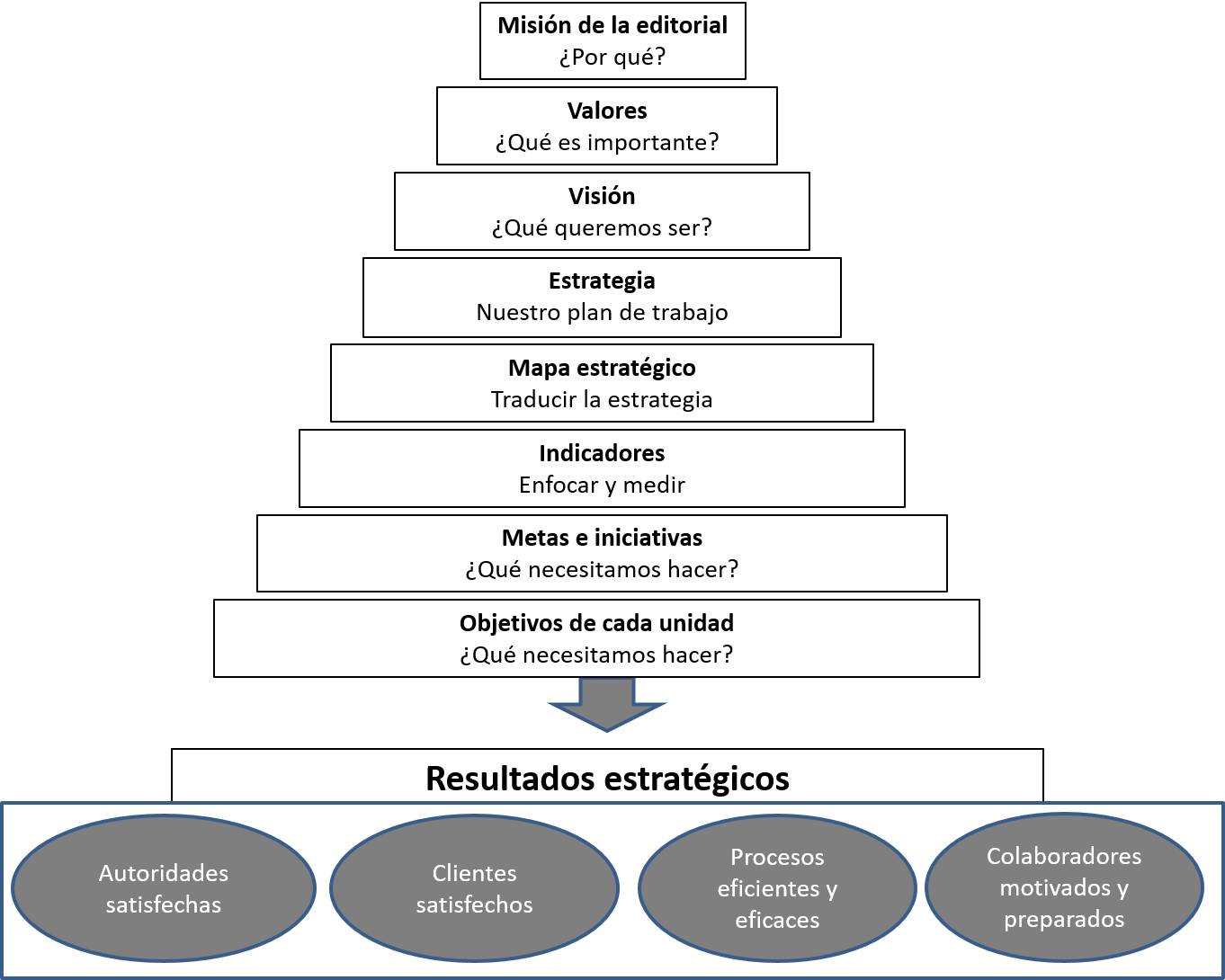 Así como existen responsables clave en procesos clave que generan indicadores clave, existen también procesos operativos rutinarios. Esta medida cuantificable, utilizada para evaluar el éxito de los procesos de la editorial en el cumplimiento de los objetivos de desempeño, debe ir complementando la medición de los procesos con la cultura organizacional. Recordando que los KPI deben definirse de acuerdo con los objetivos críticos o fundamentales del negocio, pero no por ello deben limitar qué es lo que cada editorial pretende medir para mejorar sus procesos.