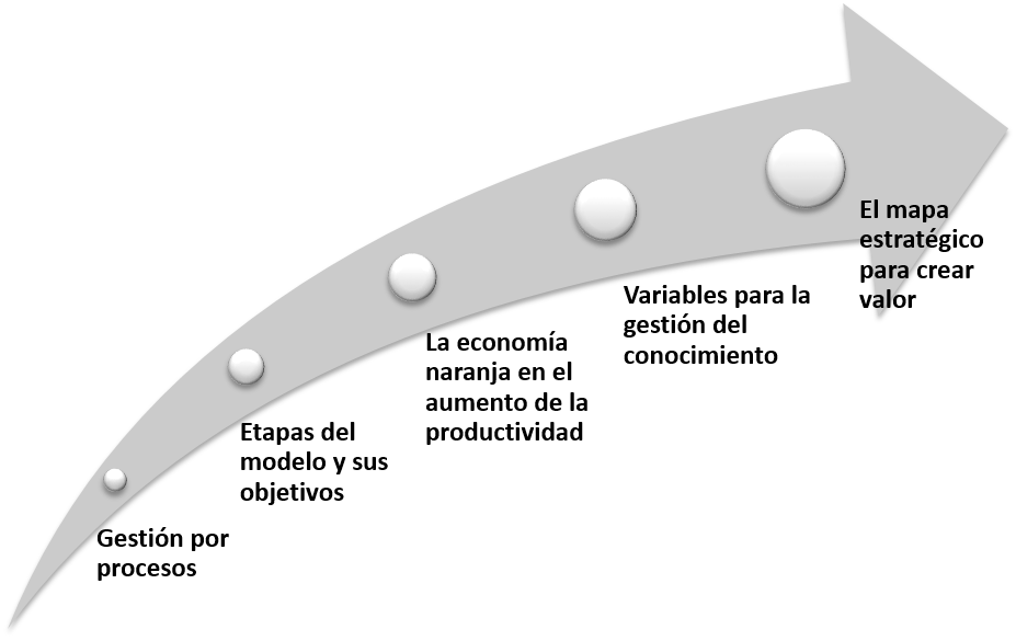 Es así como se presenta un modelo basado en la gestión por procesos, a lo que se añaden las etapas del modelo, las actividades para el mejoramiento y el mapa estratégico para crear valor.