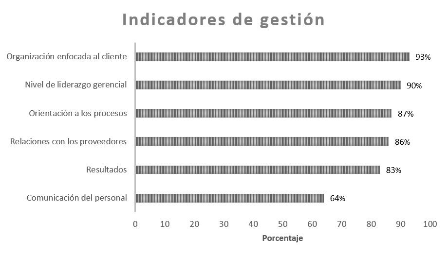 Para determinar los modelos de gestión que se manejan en Latinoamérica y el Caribe, con base en las características expuestas por este y otros autores (2014-2019), se identificaron los siguientes puntos en común, de acuerdo con la organización enfocada al cliente, el nivel de liderazgo gerencial, la orientación a los procesos, la relación con los proveedores, los resultados y la comunicación del personal. Ver figura 1 con sus respectivos porcentajes de incidencia.