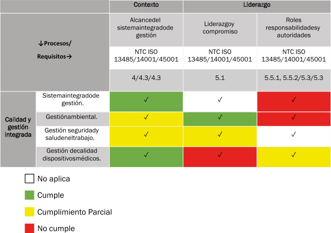 Finalmente, se señalaron con un símbolo de aprobado todos aquellos requisitos que tienen impacto sobre los procesos y se indica su unificación con el sistema de gestión. Adicionalmente, esta subetapa permitió: