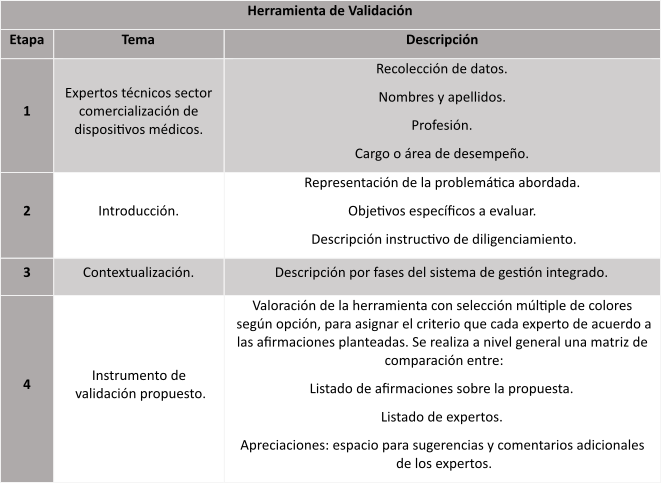 Tal como se planteó en la tabla 1, la metodología de validación se realizó a través de cuatro etapas que permitieron obtener las siguientes apreciaciones: